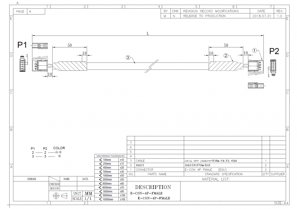 E-CON/E-CON 長度:0.6M/1M/2M/3M/5M 不在此規格內皆可訂製,請來電洽詢