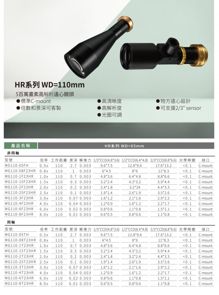 5百萬畫素高解析遠心鏡頭 ・標準C-mount ・倍數和景深可客製 ・高清晰度 ・高解析度 ・光圈可調 ・物方遠心設計 ・可支援2/3" sensor